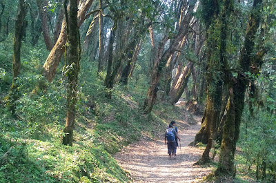 Etter lunsj gikk det litt nedover og inn i skogen igjen. Som vanlig med Ang og Prasang foran meg.